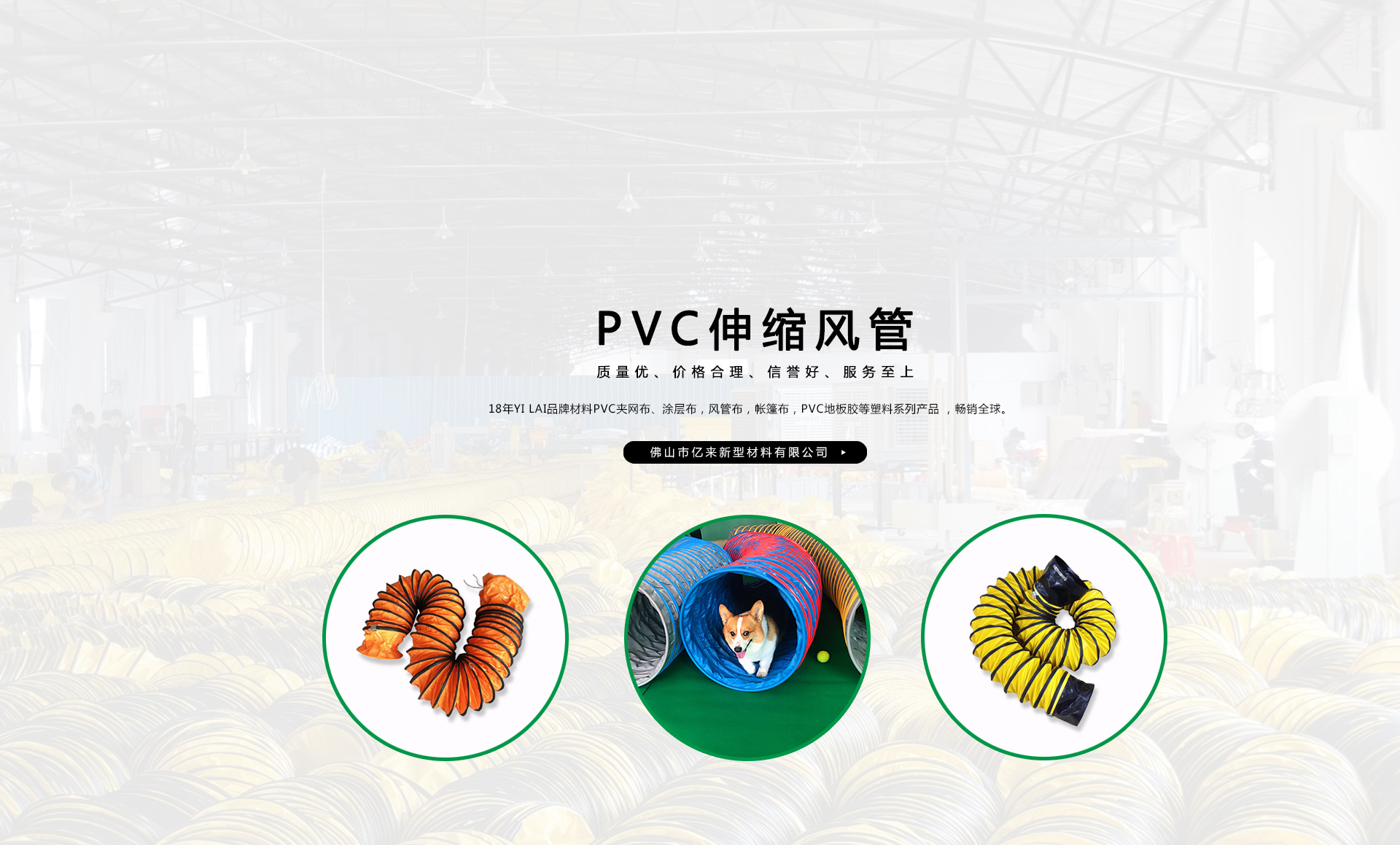 創(chuàng)建“YILAI品牌”近20年來(lái),產(chǎn)品質(zhì)量穩(wěn)定提高,生產(chǎn)及經(jīng)營(yíng)的產(chǎn)品包括PVC夾網(wǎng)布、PVC彩條布、PVC風(fēng)管布、PVC涂層布、PVC籬笆圍護(hù)欄布、PVC透明夾網(wǎng)布、PVC伸縮風(fēng)管、車縫風(fēng)管、寵物管、耐高溫風(fēng)管、地下室通風(fēng)管,保溫通風(fēng)管、空調(diào)排風(fēng)管、正負(fù)壓通風(fēng)管、三通/四通排風(fēng)管、防靜電風(fēng)管、隧道風(fēng)管、PVC地板膠等系列產(chǎn)品在市場(chǎng)上得到廣大客戶認(rèn)可,暢銷歐美、東南亞、非洲、中東等國(guó)外市場(chǎng)。